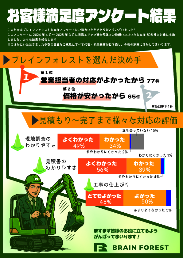 2024年4月~2025年3月に東海エリアで建物解体工事をご依頼いただいたお客様を対象に「お客様満足度アンケート」を実施しました!