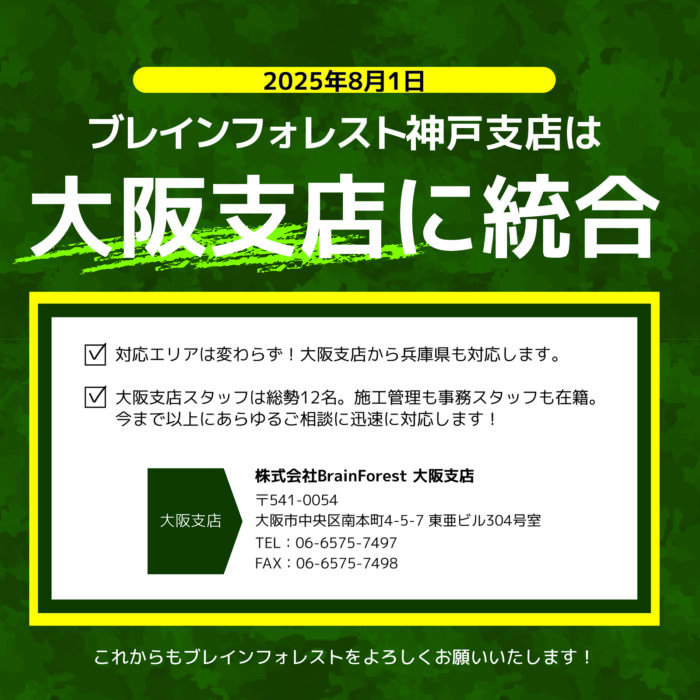 2025年8月1日株式会社BrainForest神戸支店を大阪支店に統合します!