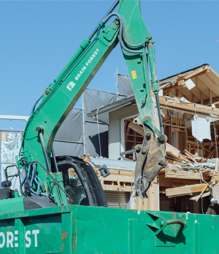 解体・リユース・リフォーム・不動産。ブレインフォレストは4つの事業のシナジーで循環型社会づくりに寄与します。もちろん適切な廃棄物管理や再利用、木材など天然資源の持続可能な利用にも取り組んでいます。