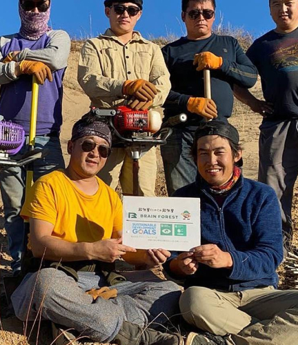 収益の一部でモンゴルのホンシャンダーク砂漠の植林活動を支援しています。苗木の購入や植栽のお手伝い、さらには植林作業をほとんどしたことがない牧民に現地スタッフが丁寧に作業を説明、現地での雇用もうまれています。